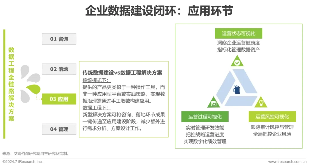数据工程的价值在于给予一整套包含数据治理、数据落地、场景构建、管理运维的完整数据建设与应用体系,改变了以往大量采购各类数据治理工具,最后却难以落地的现状。以业务流程为指引,顺利获得全流程在线的数据构建能力,打造企业高可用的数据底座,以此促进数据流与财务流、订单流的融合,从而实现对战略规划与解码、业务执行、业绩对标等重要场景的数据驱动,最终完成对企业运营模式的数字化改造,提升企业对多变环境的感知能力,实现数据驱动的可持续开展。