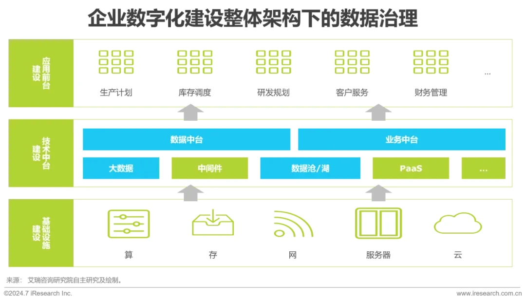 另一方面,在企业数字化的整体建设架构下,数据治理处于核心位置,对下承接算存网等底层物理资源,对上输出可供数字化呈现的企业管理数据资源。相对于前台应用系统与后台基础设施的直接上线或购入,如何治理数据是对企业“内功”的考验,经过数据治理的企业才能把业务与数据相互打通、逻辑理顺,让数字化真正内嵌于企业本身,释放企业数字化建设的最大价值。