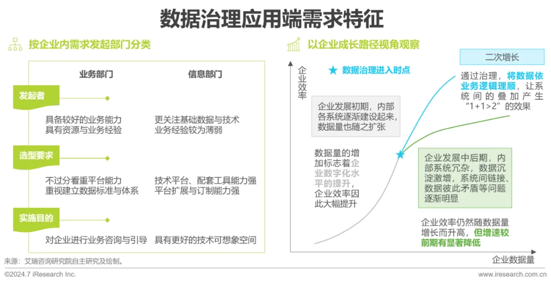 需求依发起者角色定位而有不同,成长期是数据治理进入企业的最佳时点