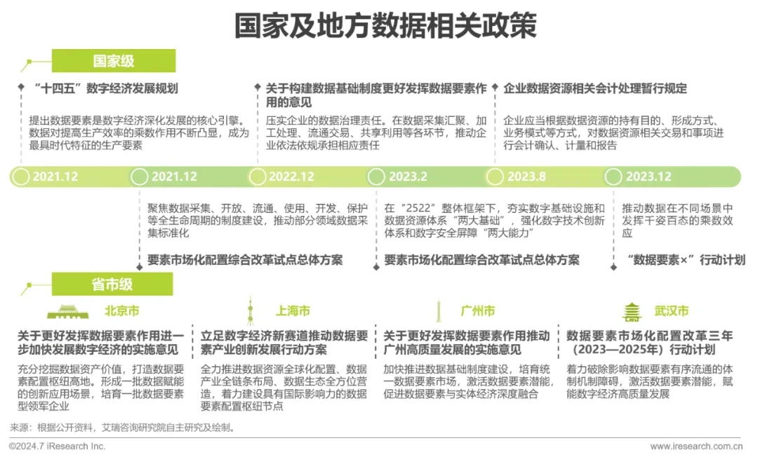 近年来,我国从数字经济开展、数据要素基础、企业数据资源入表等角度持续完善数据相关政策,旨在鼓励企业及数据行业厂商深挖数据资源,以数据为生产要素,有助于企业高质量开展。去年起,各省市地方也围绕数据要素的利用分别针对性拟定开展方案,提出未来数年开展目标,围绕自身优势禀赋规划适应自身的数字路径。